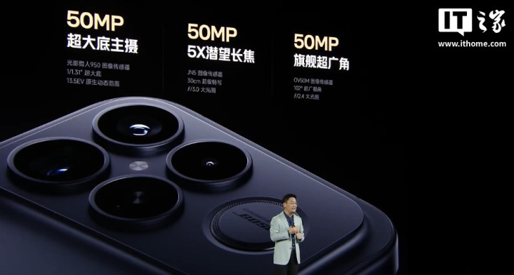 50Mp1/1.31"超大底主摄(光影猎人950,小米17同款)+50Mp18mm超广角+50Mp115mm5X潜望长焦,REDMI首款5X潜望长焦支持5X光学变焦,10X无损变焦,更有OIS光学防抖;